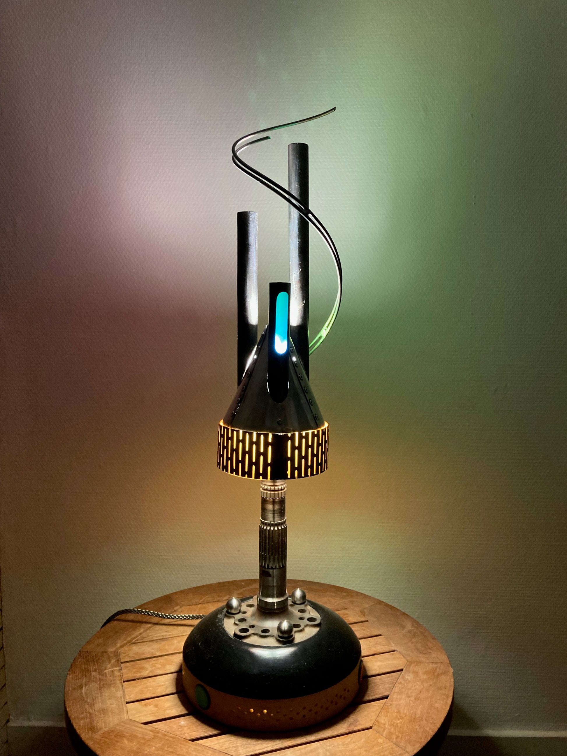 Ampoules : éclairage principal en 3 Leds type GU10, illumination du socle en 5v avec transformateur